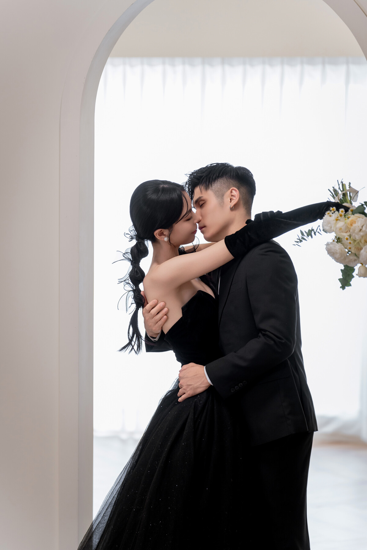 姿態俐落、眼神帶著一點距離感與自信,在鏡頭前自然展現態度與個性,像是從時尚大片裡走出來的明星!特別適合偏愛時尚氛圍、勇於表現自我風格的新娘。