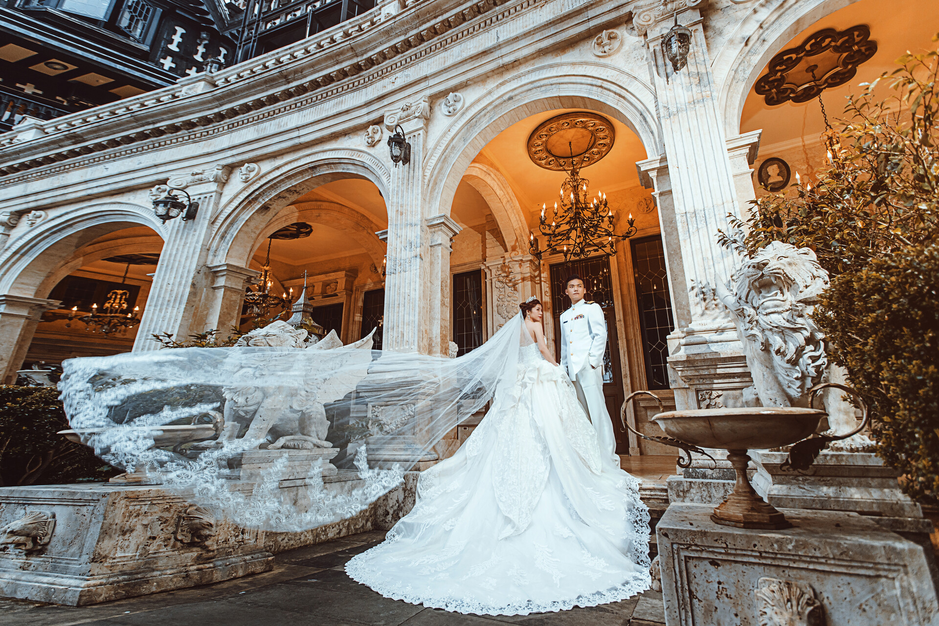 歐式古堡象徵著奢華與儀式感,彷彿變身成皇室貴族的王子與公主,舉手投足之間流露從容與優雅,步伐緩慢而自信,只留下莊重而浪漫的瞬間。