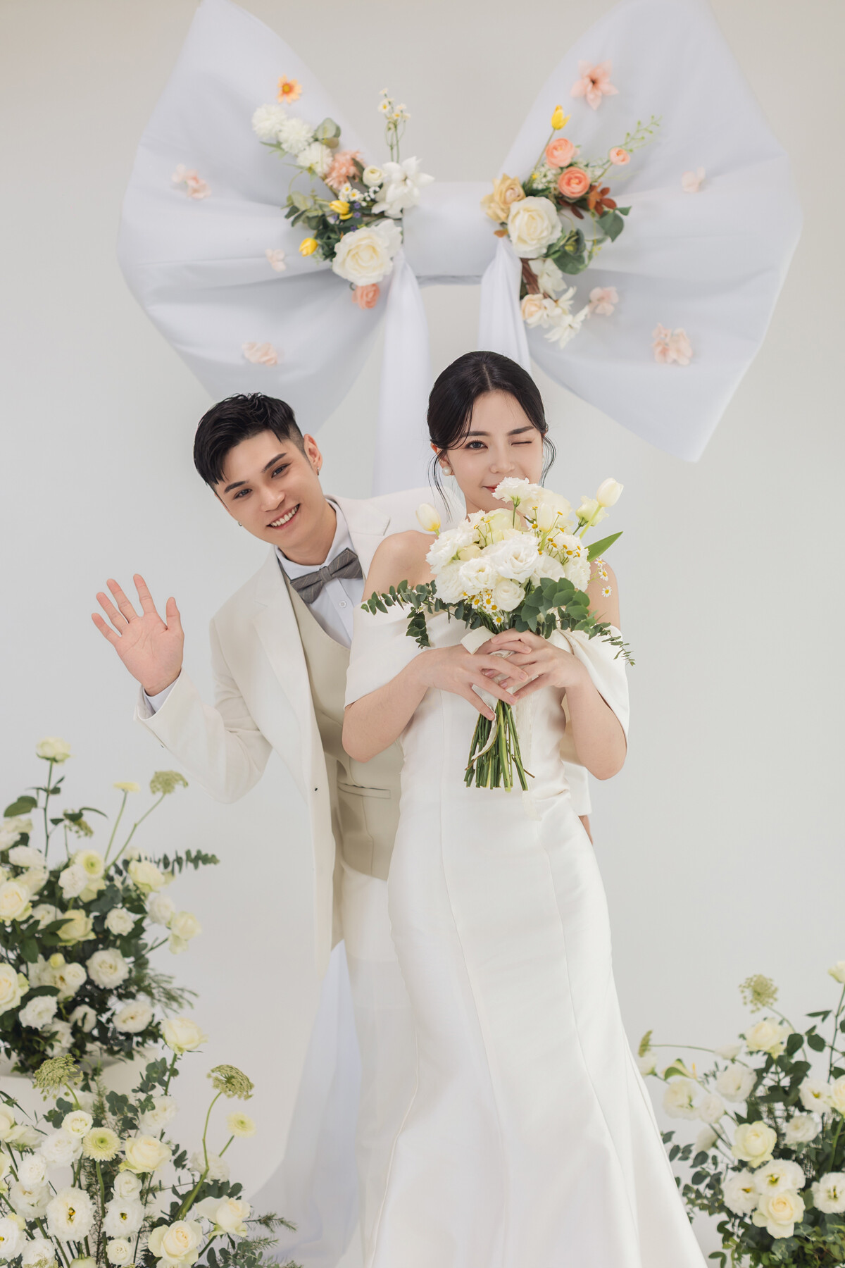 韓系極簡風的魅力,在於乾淨柔和的光影與不經雕琢的自然氛圍,純白與奶油白的色調像溫柔的濾鏡,把日常拉成更美的一刻,笑容、眼神、微微靠近的姿態,都會在簡約背景裡更清晰動人。