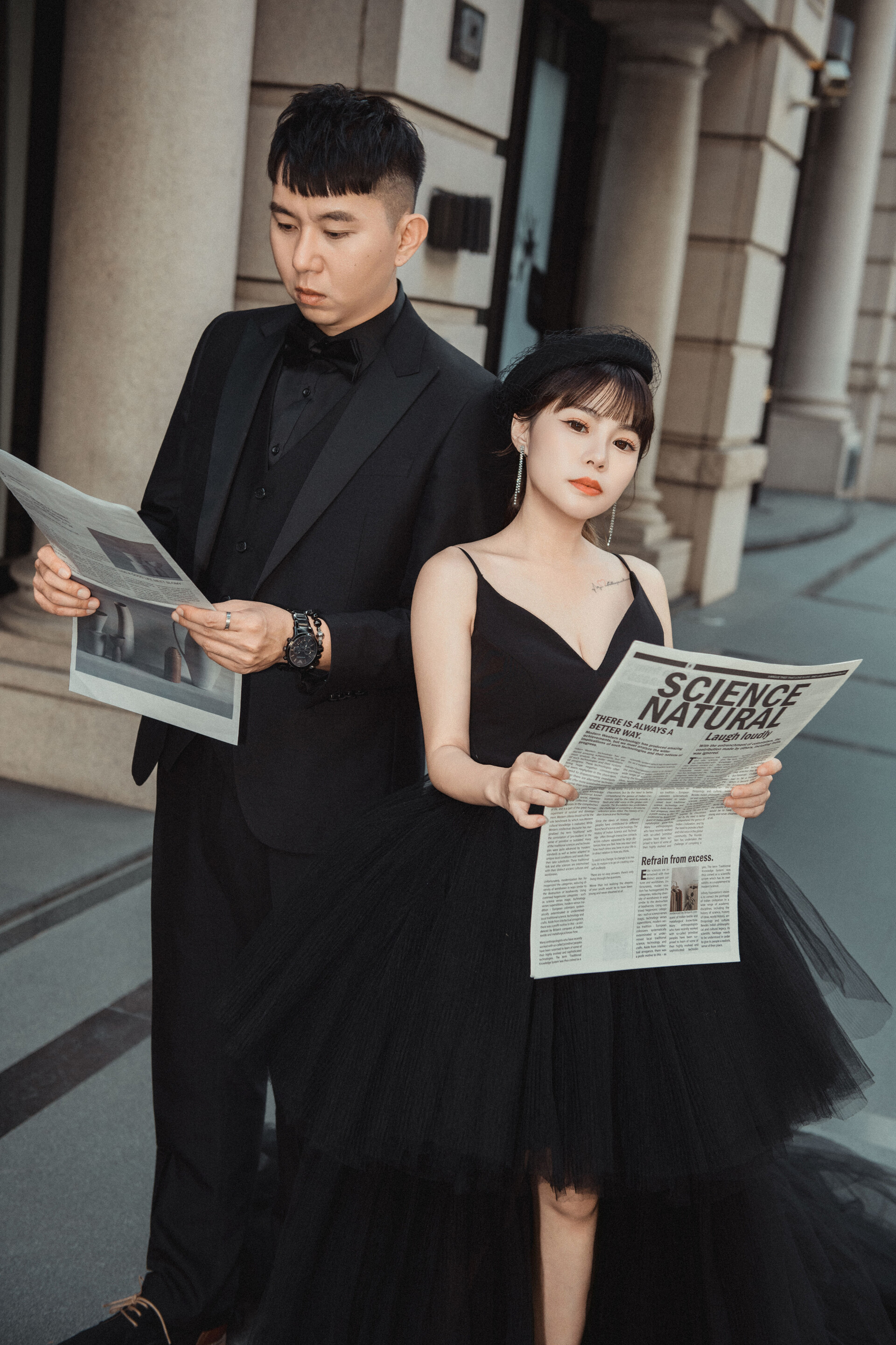 姿態俐落、眼神帶著一點距離感與自信,在鏡頭前自然展現態度與個性,像是從時尚大片裡走出來的明星!特別適合偏愛時尚氛圍、勇於表現自我風格的新娘。